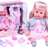 La apăsarea burticii sau a mânuțelor, păpușa scoate diferite sunete: râs, plâns, gângurit, „mama”, „tata”, băut din biberon și râgâit. Astfel, copiii trăiesc o experiență mai autentică de îngrijire a bebelușului.
