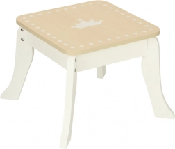 Pachetul include și un scăunel pentru o poziție comodă. Produsul este realizat integral din lemn șlefuit fin, acoperit cu vopsele netoxice, într-un design elegant alb-auriu, care va încânta ca element decorativ al camerei copilului.