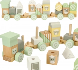 Jocul cu trenulețul susține coordonarea mână–ochi, antrenează prinderea și asamblarea și, în același timp, dezvoltă imaginația spațială și gândirea logică. Construcția robustă din lemn garantează că jucăria va rezista multor aventuri împreună. Ambalat în cutie de carton – o idee excelentă de cadou.