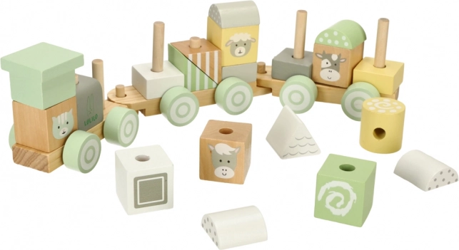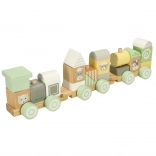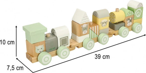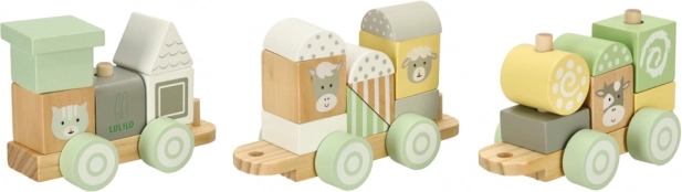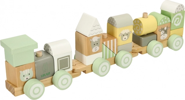 Trenulețul din lemn LULILO, în nuanțe pastel, este jucăria ideală pentru micii constructori. Copiii pot combina liber blocurile și crea mereu noi garnituri sau pot folosi cuburile separat. Fiecare piesă este șlefuită fin și colorată cu vopsele netoxice în tonuri delicate, completate de motive simpatice cu animăluțe.