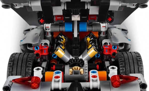 Modelul este echipat cu un motor V8 mobil cu diferențial, direcție controlată de un volan detașabil în față pentru manevrare ușoară, iar punctul de atracție îl reprezintă ușile Synchro-Helix, care se rotesc și se ridică la 90°. Este inclusă și aplicația LEGO Builder cu vizualizare 3D, rotirea modelului și urmărirea progresului construcției.