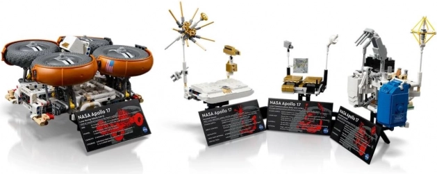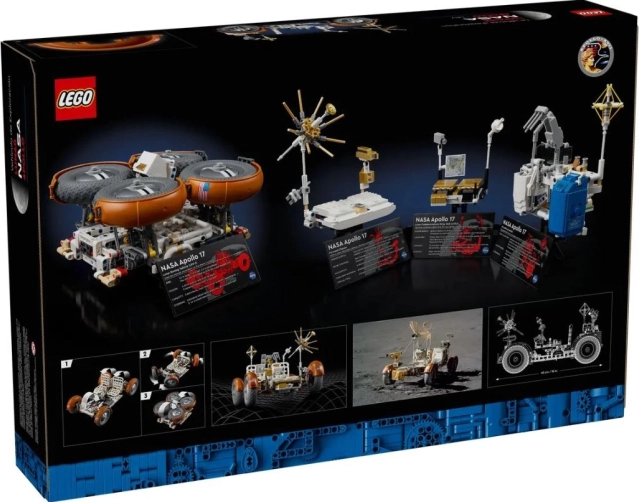 Construiește vehiculul lunar LRV iconic și rememorează momentele de vârf ale misiunii NASA Apollo 17. Modelul este gândit până la ultimul detaliu: de la scaune și instrumente la sistemul de baterii cu încălzire și răcire, camera TV cu antene și modulul de comunicații. Trei seturi suplimentare de echipamente se fixează direct pe rover și îl completează cu instrumente științifice autentice.