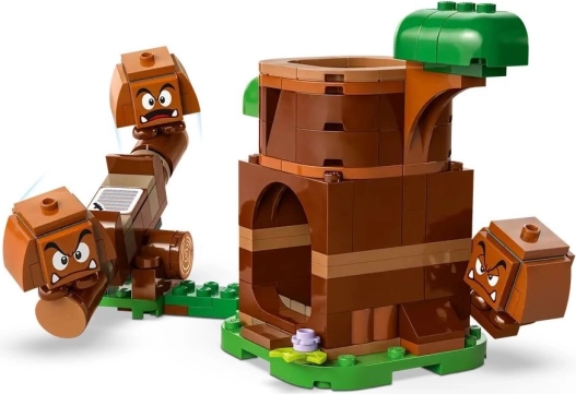 Bucurați-vă de asamblarea și joaca cu setul de colecție LEGO Super Mario Terenul Goomba, care include 173 de piese. Construiți un trunchi de copac cu leagăn unde Goombii pot pune propriul lor spectacol. Apăsați maneta din partea din spate a copacului pentru a-l arunca pe Goomba și puteți crea propriul turn Goomba din figurine.