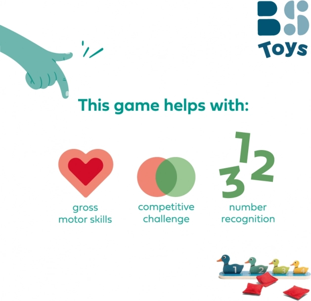 Joc de îndemânare distractiv și simplu pentru 1–4 jucători, de la 3 ani. Aliniați rațele și încercați să le doborâți aruncând săculeți mici. Ideal pentru distracție în familie și petreceri pentru copii – dezvoltă motricitatea grosieră, gândirea strategică și favorizează competiția prietenoasă.