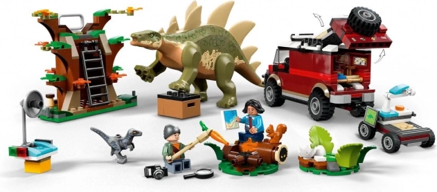Descoperiți, salvați și explorați cu acest set grozav din universul LEGO Jurassic World. Marele stegozaur cu membre mobile, micul velociraptor și minifigurinele Ben și Sammy îi inspiră pe copii să creeze povești imaginative. Vehiculul off-road are loc pentru două minifigurine, acoperiș detașabil, partea din spate care se deschide și un spațiu de încărcare mobil. Nu lipsește remorca cu antena satelit rotativă, microscop și ecrane pentru misiuni de explorare.