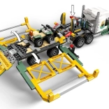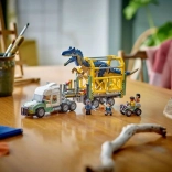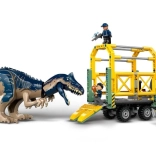 Cu setul Misiune cu dinozauri: vehicul de transport pentru allosaur (76966), copiii de 8 ani și mai mari sunt așteptați de noi și neașteptate aventuri cu animale. Acest set LEGO Jurassic World cu dinozauri este un cadou grozav pentru petrecerile copiilor și inspiră jocul de rol. Le permite copiilor să creeze nenumărate povești, incluzând o figurină turnată de allosaur cu picioare, cap și gură mobilă, precum și minifigurinele Darius, Kenji, Yaz și un paznic. Setul include un cap tractor cu acoperiș și capotă rabatabile, cabină cu spațiu pentru trei minifigurine și zonă de încărcare, o remorcă cu cușcă cu suporți frontali și rampă spate rabatabilă, o cușcă ce se deschide cu pârghie, un ATV și o dronă, plus multe alte accesorii care încurajează inventarea de povești.