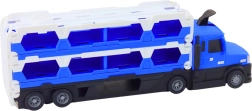 Acest camion multifuncțional, într-o nuanță atrăgătoare de albastru, combină transportorul de mașini și pista de curse 2‑în‑1. După deschidere, obții o pistă de până la 211 cm, ideală pentru dueluri dinamice și antrenarea abilităților de condus. Luminile și sunetele realiste intensifică atmosfera, ca la cursele adevărate.
