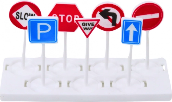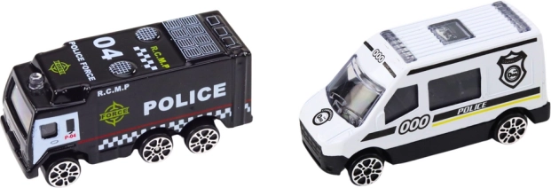 Pachetul include 2 mașinuțe de poliție 1:64 și 7 indicatoare rutiere, datorită cărora copiii pot crea ușor propriile scenarii, pot asimila regulile de bază ale circulației și își pot dezvolta imaginația și motricitatea fină. Setul este potrivit pentru copii de la 3 ani și respectă normele de siguranță CE și EN71.