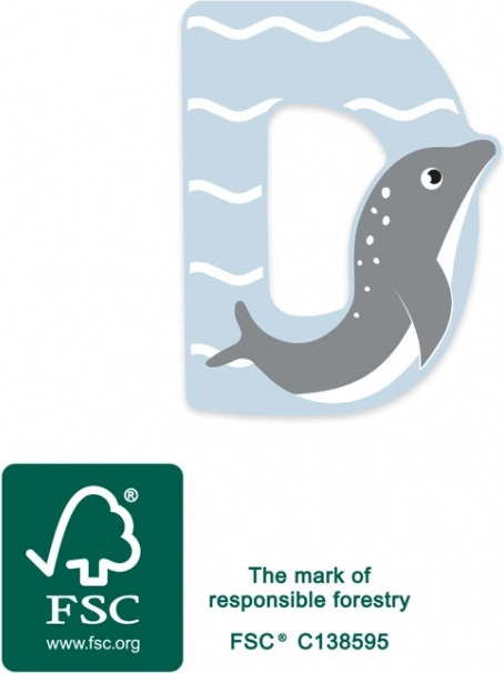 Minunata literă din lemn D de la small foot va înveseli orice cameră de copil. Este realizată din lemn 100% certificat FSC®, are margini rotunjite pentru o prindere sigură și un design pastel cu delfin care îi va încânta pe cei mici și mari. Ideală ca decorațiune, pentru învățarea alfabetului și formarea numelor sau a cuvintelor scurte.