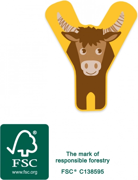 Litera din lemn Y din noua colecție ABC cu animale este o decorațiune ideală pentru camera copiilor. Datorită marginilor rotunjite și designului pastel vesel, este nu doar estetică, ci și plăcută la atingere.