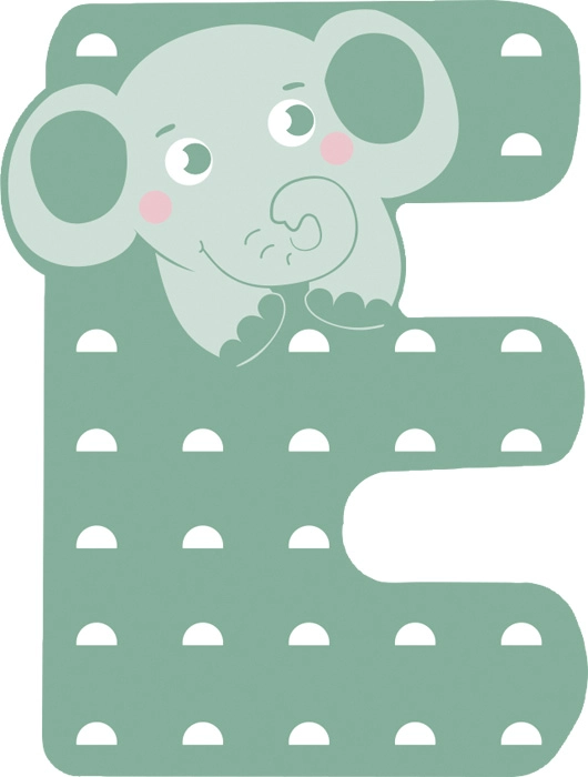 Creați nume, inscripții sau fraze vesele cu literele din noua serie ABC cu animale. Litera din lemn E de la small foot este realizată din lemn de calitate, 100% certificat FSC®, astfel încât va încânta nu doar copiii, ci și părinții care țin la sustenabilitate. Culorile pastelate și motivul cu elefant oferă stil oricărui perete, raft sau ușă.