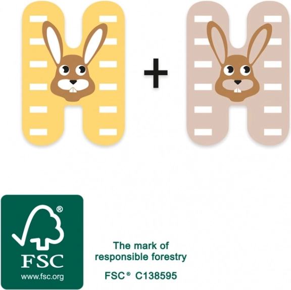 Litera din lemn H din seria ABC cu motiv de animale, specific cu iepure, este decorul perfect pentru copii. Designul pastelat și marginile rotunjite asigură atât atracție vizuală, cât și siguranță în utilizare. Această literă poate înfrumuseța camera copilului sau poate servi pentru jocuri educative de formare a cuvintelor.