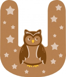 Ilustrația drăguță a bufniței și steluțelor face din această literă un accesoriu grozav pentru camera copiilor.
