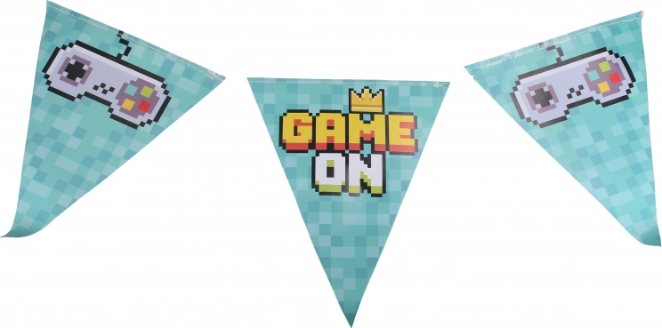 Oferiți petrecerii o atmosferă de gaming datorită stegulețelor decorative cu design JOC. Ideale pentru aniversări, petreceri tematice, petreceri pentru copii și seri de jocuri. Datorită realizării din hârtie sunt ușoare, se agață ușor și după eveniment pot fi eliminate ecologic.