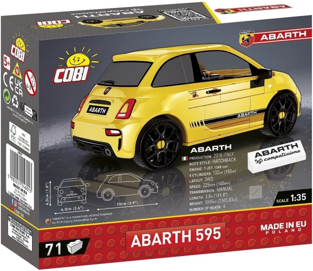 Model licențiat din cărămizi COBI care surprinde iconicul automobil ABARTH 595 Competizione la scara 1:35. Oferă 71 de piese de înaltă calitate cu imprimeuri durabile, roți care se rotesc cu anvelope și compatibilitate cu alte mărci. Ideal atât ca model de colecție, cât și ca set de construcție distractiv pentru iubitorii de mașini, mici și mari.