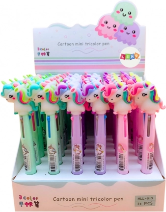 Pix multicolor distractiv și practic cu motiv unicorn oferă 3 culori într-un singur instrument. Comutare ușoară prin apăsare, ideal pentru scris și desen, atractiv pentru copii de la 3 ani, cu certificare CE. Culoarea carcasei este aleasă aleatoriu. Preț pentru 1 bucată.