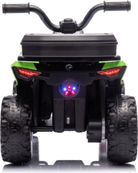 Mini ATV electric verde pentru copii GTS1155 oferă celor mici o plimbare sigură și distractivă, atât în interior, cât și în exterior. Construcția robustă, roțile mari pentru teren accidentat și șaua confortabilă susțin stabilitatea și controlul sigur. Aspect realist, materiale rezistente și direcție ușoară cu ghidon fac din acest model o alegere excelentă pentru primele experiențe „off‑road”.