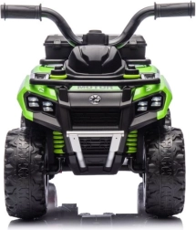 Mini quadul electric GTS1155, în nuanță verde atrăgătoare, este conceput pentru micii exploratori. Roțile mari, profilate, fac față suprafețelor denivelate și oferă totodată o bună stabilitate. Datorită șeii bine conturate și ghidonului solid, copiii învață rapid să controleze intuitiv mersul.