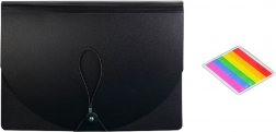 Mapa conține până la 24 de buzunare pentru documente format A4, fiecare buzunar având o culoare diferită pentru sortare și acces rapid la documente.Fiecare buzunar este suficient de încăpător pentru a găzdui până la câteva sute de coli de hârtie, astfel încât dosarul este ideal pentru depozitarea unui volum mare de documente.Buzunarele pot fi etichetate cu marker, ceea ce ușurează organizarea și găsirea documentelor necesare. Astfel poți identifica rapid conținutul fiecărui buzunar.