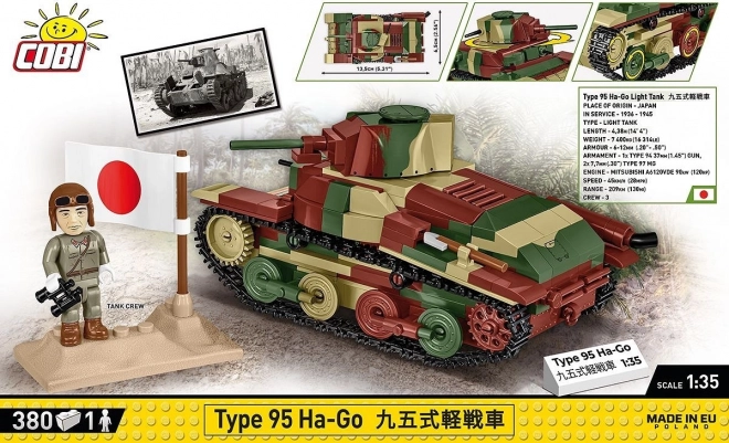 Setul reproduce celebrul tanc ușor TYPE 95 HA-GO, coloana vertebrală a unităților blindate ale Armatei Imperiale Japoneze în anii ’30 și ’40. Tancul s-a remarcat în luptele din Filipine, Birmania și Guadalcanal. Modelul la scara 1:35 redă fidel detaliile și oferă o experiență excelentă de construcție și expunere.
