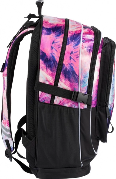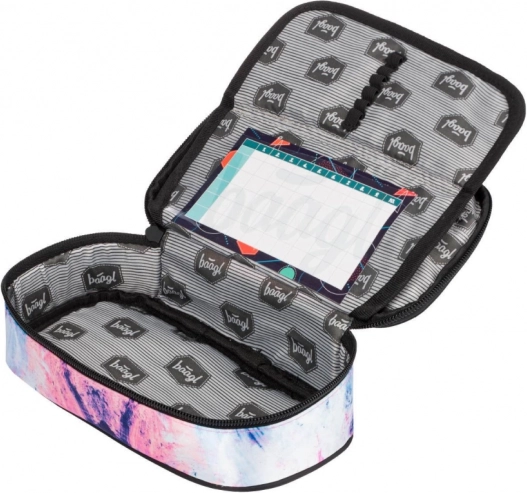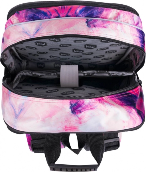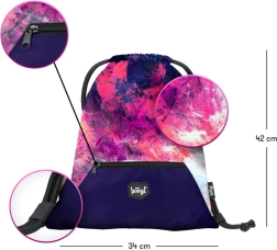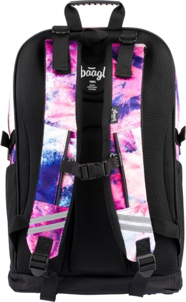 Set școlar stilat pentru fete BAAGL Abstract, care include un rucsac spațios cu trei compartimente, un săculeț practic pentru spate și un penar rigid. Oferă spate ergonomic, organizare bogată, elemente reflectorizante și materiale rezistente într-un design modern mov-roz cu detalii. Ideal din clasa a 3-a.