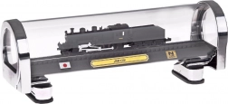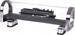 Tub cilindric transparent din plastic robust care protejează modelul de praf și șocuri și, datorită ramelor argintii, oferă un aspect luxos.