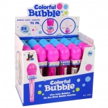 Sticluța transparentă cu soluție clară are o formă practică, alungită, pentru o prindere ușoară. Doar scoți bețișorul, sufli ușor sau fluturi și apar imediat bule frumoase, curcubeu. Ideal pentru petreceri, locuri de joacă și momente în familie.