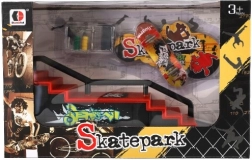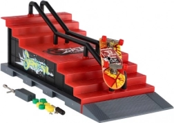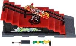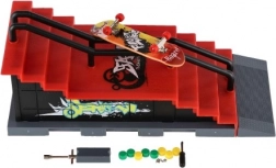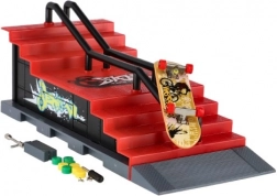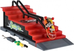 Acest skatepark pentru degete oferă o experiență realistă de fingerboarding în format de buzunar. Construcția robustă din plastic cu scări, rampă și balustradă metalică este perfectă pentru grind-uri, ollie și alte trick-uri. Pachetul include un fingerboard de 8 cm și unelte și piese mici pentru reglaje cu șuruburi.