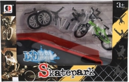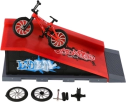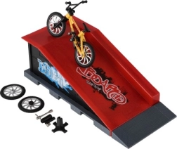 Acest set cu bicicleta pentru degete și rampă aduce un skatepark compact direct pe masa ta. Mini BMX-ul cu piese interschimbabile este ideal pentru antrenarea trucurilor, săriturilor și aterizărilor precise. Datorită pieselor înfiletabile, îți ajustezi ușor bicicleta și înveți bazele mini-service-ului – de la schimbarea roților la peg-uri.