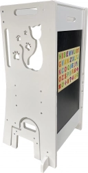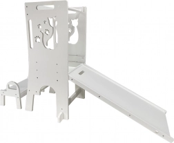 Sprijiniți autonomia și motricitatea copiilor cu un turn de învățare practic, conceput pentru utilizare sigură lângă blatul de bucătărie sau birou. Copilul stă pe o platformă stabilă înconjurată de o balustradă, la care ajunge ușor urcând o treaptă. Construcția multifuncțională permite transformarea turnului într-un element de joacă cu tobogan și oferă distracție creativă datorită tablei magnetice.