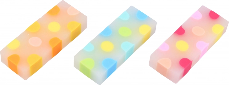 Bucură-te de scriere și desenare cu această radieră colorată care înviorează spațiul tău de lucru. Fiecare radieră este unicată datorită designului său colorat.
