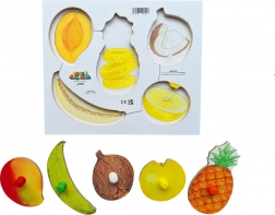 - Așezarea motivelor de fructe precum mango, ananas, lămâie, cocos și plantain le arată copiilor aspectul real sub coajă.