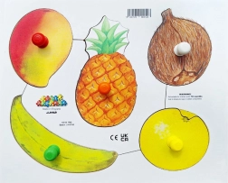 Acest puzzle din lemn de la brandul Just Jigsaws reprezintă o modalitate excelentă de a învăța copiii să recunoască fructele exotice. Copiii pot folosi știfturile pentru a prinde ușor piesele individuale și a le asocia cu varianta tăiată. Avantaje principale: