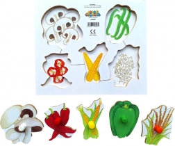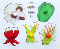 Puzzle-ul conține ilustrații colorate ale legumelor care ajută copiii să le recunoască mai rapid formele și culorile.