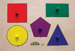 Copiii învață să recunoască diferite forme și culori datorită celor cinci forme colorate și a deschiderilor precise din tablă.