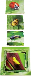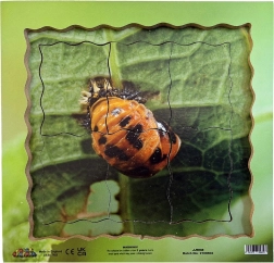 Puzzle educațional care ilustrează fascinantul ciclu de viață al buburuzei, atrăgând atenția copiilor și educându-i despre natură prin intermediul fotografiilor reale.