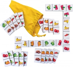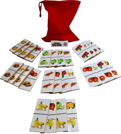 Domino din lemn cu imagini reale ale fructelor și legumelor este ideal pentru copii care doresc să cunoască diverse fructe printr-o formă de joc și să își dezvolte abilitățile de asociere și învățare. Jocul este conceput pentru a combina principiile tradiționale ale jocului de domino cu elemente educative care încurajează curiozitatea și învățarea copiilor. Setul include 28 de piese cu fotografii reale care înlocuiesc punctele sau cifrele obișnuite.