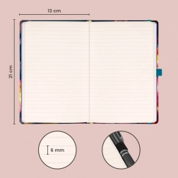 Filele liniate pe hârtie galbenă oferă un contrast plăcut și o lizibilitate confortabilă. Dimensiunea compactă 13 × 21 cm încape perfect în poșetă sau rucsac, și totuși oferă suficient spațiu pentru 172 de pagini de notițe, sarcini și idei creative.