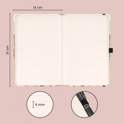 Caiet de notițe elegant, liniat, cu coperți tari și închidere practică cu elastic. Oferă buclă pentru creion, buzunar interior pentru mărunțișuri și 172 de pagini punctate pe hârtie galbenă pentru ideile tale, notele de jurnal și observațiile de lucru.
