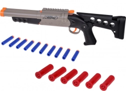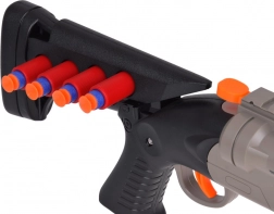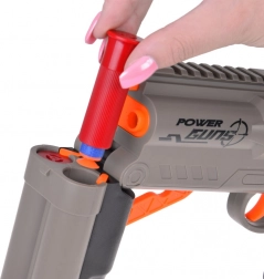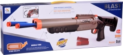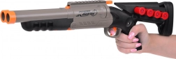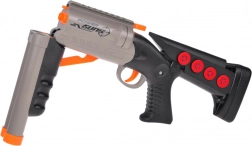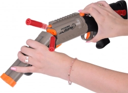 Această pușcă dubă pentru copii, robustă, este ideală pentru jocuri dinamice acasă și în aer liber. Se remarcă prin plastic de calitate, accente portocalii de siguranță și detalii realiste, inclusiv ejecția cartușelor goale la reîncărcare. Datorită țevi duble, poți trage o singură săgeată cu o apăsare ușoară a trăgaciului sau ambele simultan cu o apăsare mai puternică.