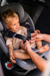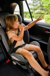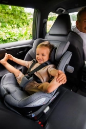 MoMi EMI oferă rotire la 360°, ceea ce permite instalarea ușoară atât împotriva, cât și în direcția de mers. Include protecții laterale SIPS, 11 poziții ale tetierei și 6 niveluri de înclinare pentru confort și siguranță maximă. Un plus de siguranță este oferit de sistemele de fixare TOP TETHER.