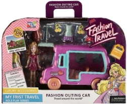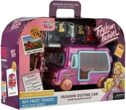 Jucărie sub formă de automobil roz, ideal pentru călătoriile păpușilor la prezentările de modă, sprijină imaginația și dezvoltarea poveștilor.