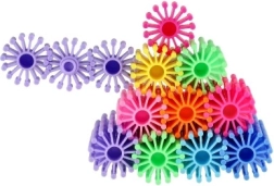 Acest set de construcție este compus din 60 de roți dințate din plastic colorate, care se conectează ușor. Oferă copiilor ore de distracție creativă și îi învață bazele mecanicii și gândirea combinatorică.