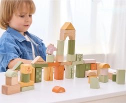 50 de cărămizi din lemn, atent finisate, în nuanțe delicate, cu motive de animăluțe, stimulează jocul creativ și bazele STEM. Suprafața netedă și execuția de calitate asigură durabilitate și joacă în siguranță.