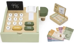 Descoperă caseta de marcat din lemn, distractivă, pentru micii vânzători de la Polar B. Această casă de marcat realistă pentru copii, cu accesorii, susține interacțiunea socială, comunicarea și calculul. Datorită bancnotelor, monedelor, cardului de plată și scannerului, copiii trăiesc o joacă autentică de-a magazinul și exersează cu ușurință matematica prin joc.