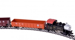 Această cale ferată electrică la scara H0 (1:87) reproduce fidel o locomotivă cu abur reală, inclusiv șasiu detaliat și inscripții realiste. Stabilitatea în curbe este asigurată de locomotiva lestată și rulajul de calitate. Cele două vagoane de marfă cu osii pivotante abordează lin virajele și permit transportul unor încărcături mici.