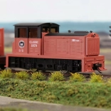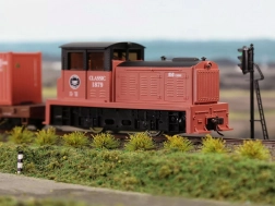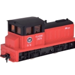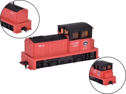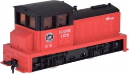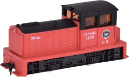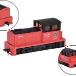 Locomotiva roșie cu acoperiș negru oferă o execuție precisă, rulare fiabilă și greutate suplimentară pentru stabilitate în curbe.