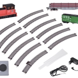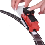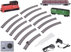 Șinele au profile metalice și traverse din plastic cu textură realistă de lemn. Sistemul de îmbinare prin inserție asigură o conexiune fermă, astfel încât linia nu se desface în timpul rulării. Unitatea de control alimentată din rețea permite mers înainte/înapoi, STOP și reglarea vitezei. Pachetul include și un ghidaj de vagon (re-railer) pentru așezarea rapidă și precisă a garniturii pe șine.