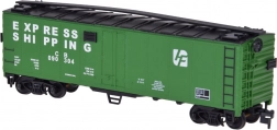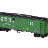 Setul include un vagon închis „Express Shipping” și un vagon platformă deschis cu balustradă – ideale pentru scene de marfă realiste.