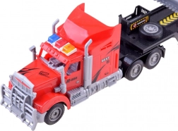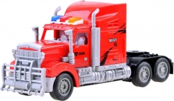 Acest camion realist cu remorcă și tractor cu remorcă aduce distracție dublă. Capul tractor telecomandat se deplasează cu ușurință înainte și înapoi și virează la stânga și la dreapta, iar iluminarea LED amplifică atmosfera jocului chiar și pe întuneric. Tractorul cu remorcă nu are baterii – se mișcă prin împingere, fiind oricând gata de acțiune.